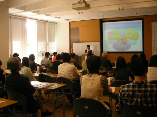 赤ちゃんからのESDとよなかは、狭い意味での「子育てを学ぶ」のではなく、子どもを取り巻く環境を広い視野から学ぶとともに、学ぶだけでなく、いっしょに参加できることを大切にしてきた。講座で学ぶ際、託児を用意するのは当然だが、別室で子どもたちを分け、お母さんだけ学ぶのではなく、同じ部屋で子どもたちも遊びながら、お母さんも学ぶ場を提供している。講師もそういった環境での講義を理解してくれる人を選定した。