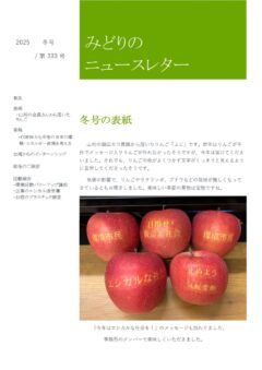 - みどりのニュースレター2025年冬号 (333号)発行表紙はメッセージ入りの真っ赤なりんご。COP30で見えた課題についてもどうぞお読みください。