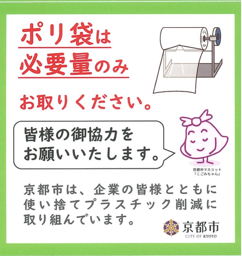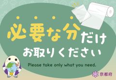 図1と図2は、滋賀県が作成したステッカー(大小2種のサイズが作成された)。これを参考に、京都市と京都府でも同様のステッカーが作成され、地域のスーパーマーケット等に配布されました(図3、図4)