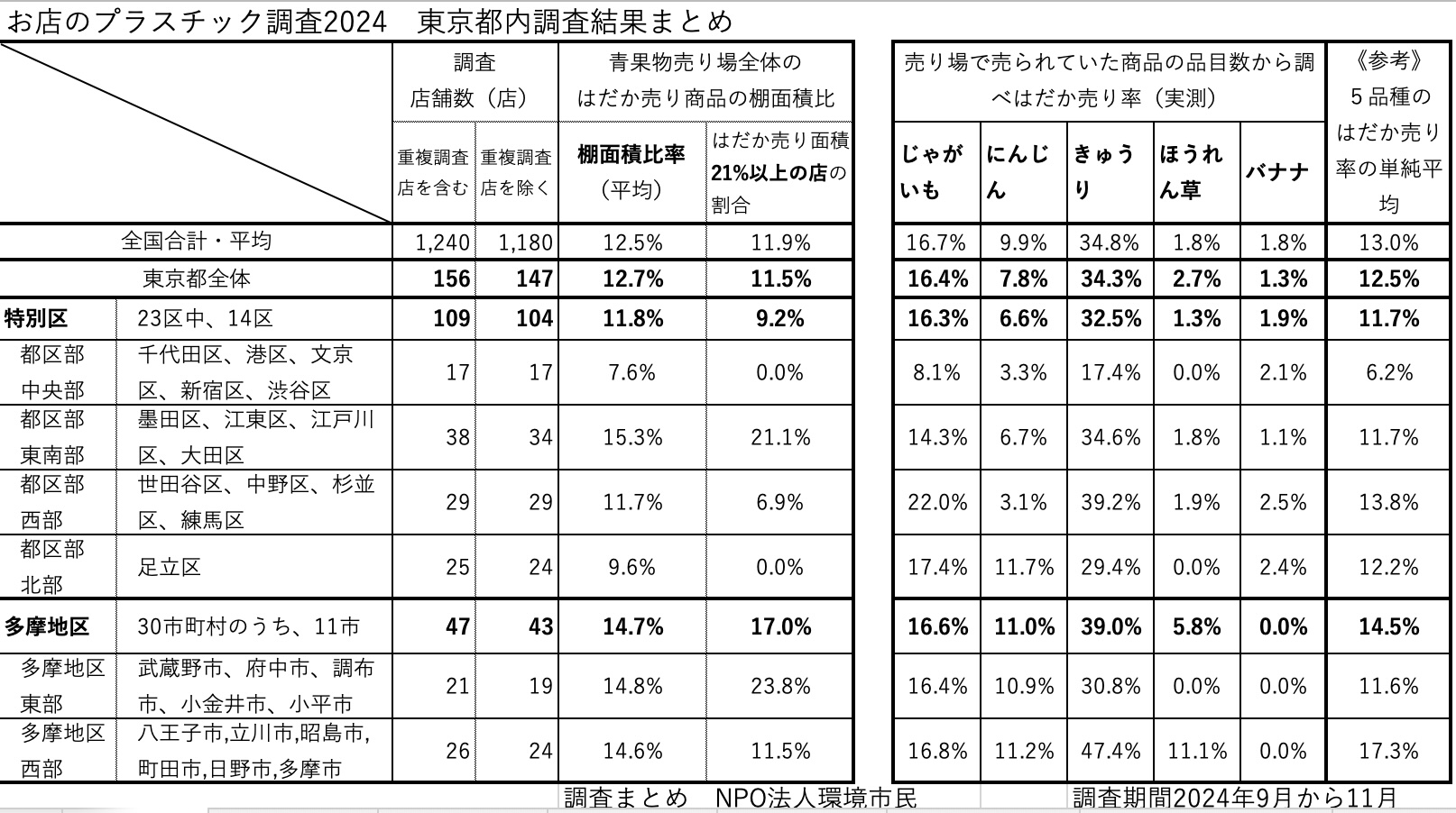東京都内調査店データまとめ | 認定NPO法人 環境市民